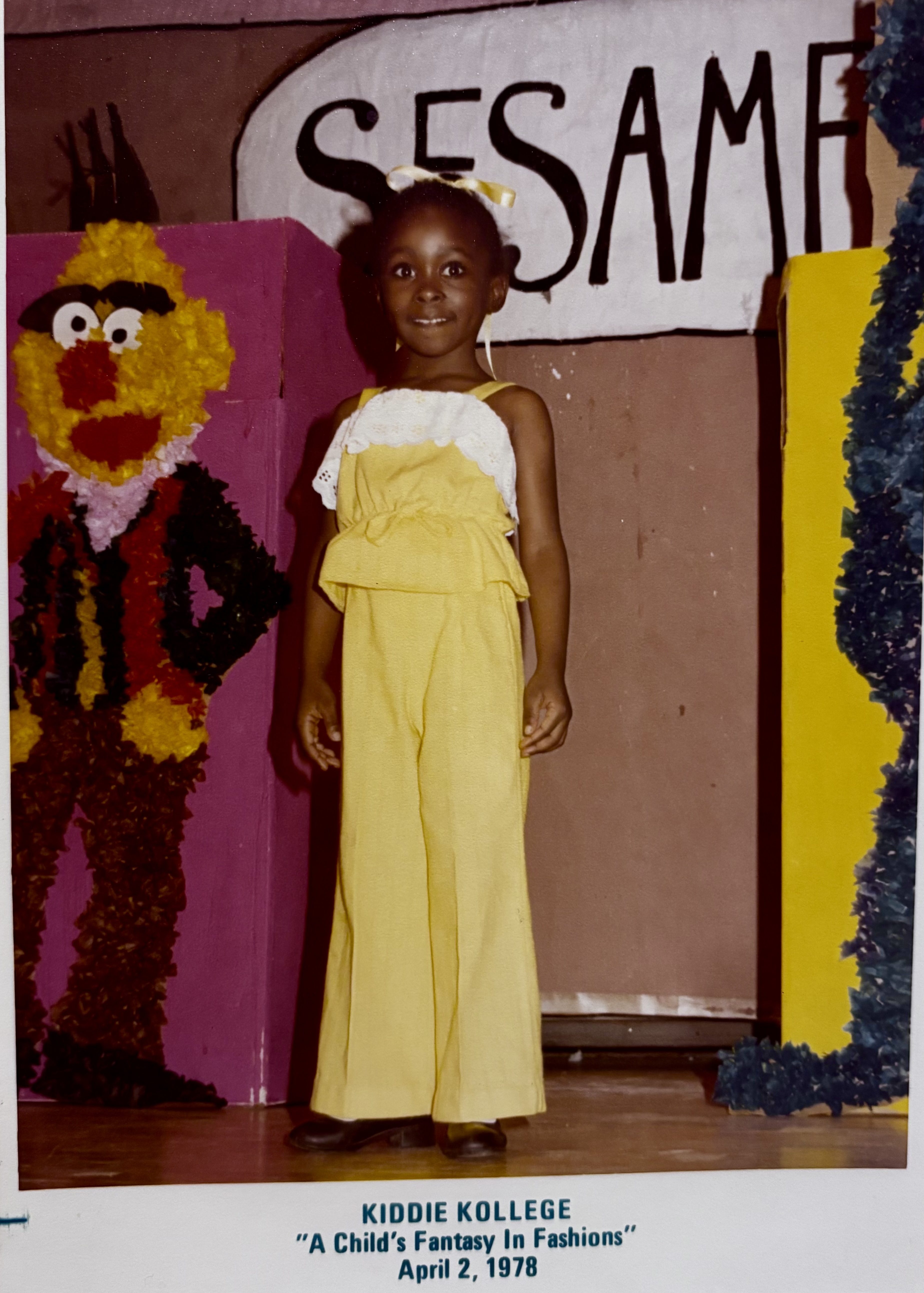 Another highlight was the school’s fashion show. Though I don’t remember every detail, photos help me recall my “modeling moment” on stage before a crowded room. I especially remember the yellow outfit my mother handpicked for me (as seen in the photo), and the gentle reminders from my teachers to smile.