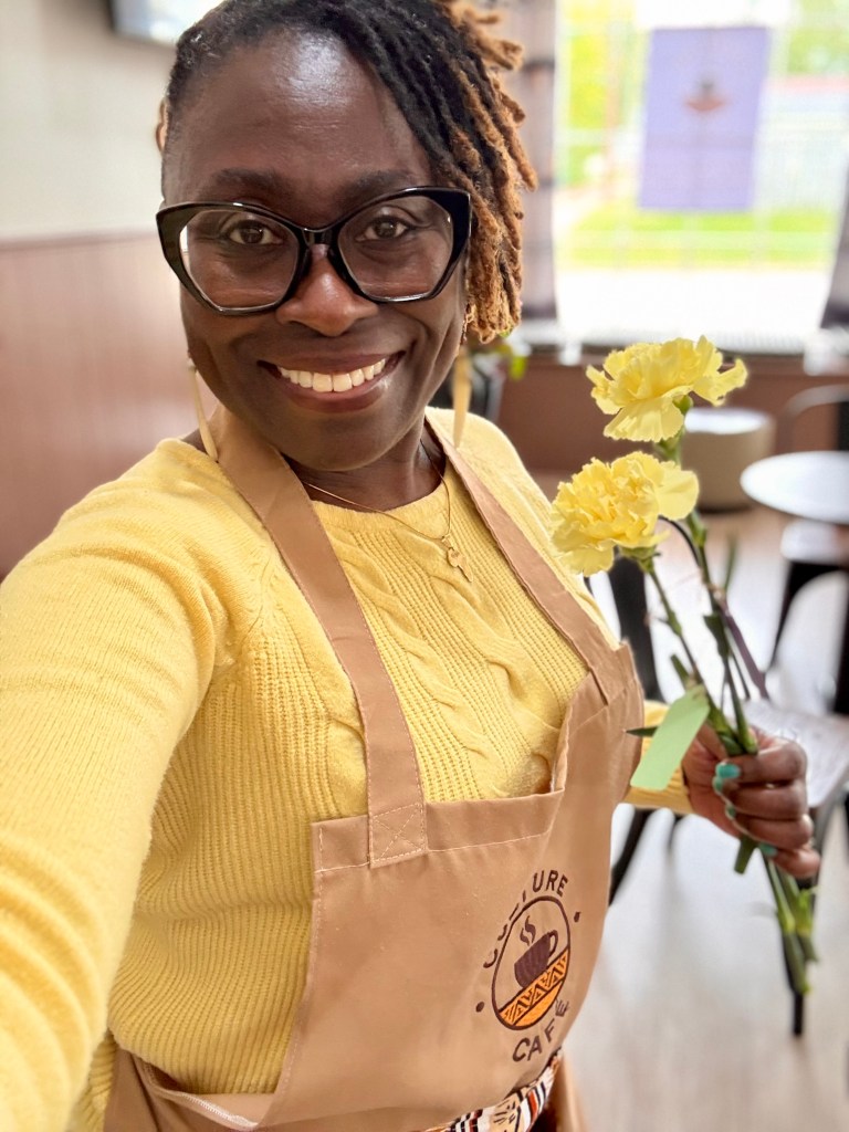 Last week, I participated in a local flower shop’s beautiful tradition of spreading kindness — Petal It Forward. The shop’s owner reached out to our café, which my husband and I co-own with another couple, and invited us to take part. She provided a bucket of flowers for customers to pick two — one to keep and one to share with someone else.