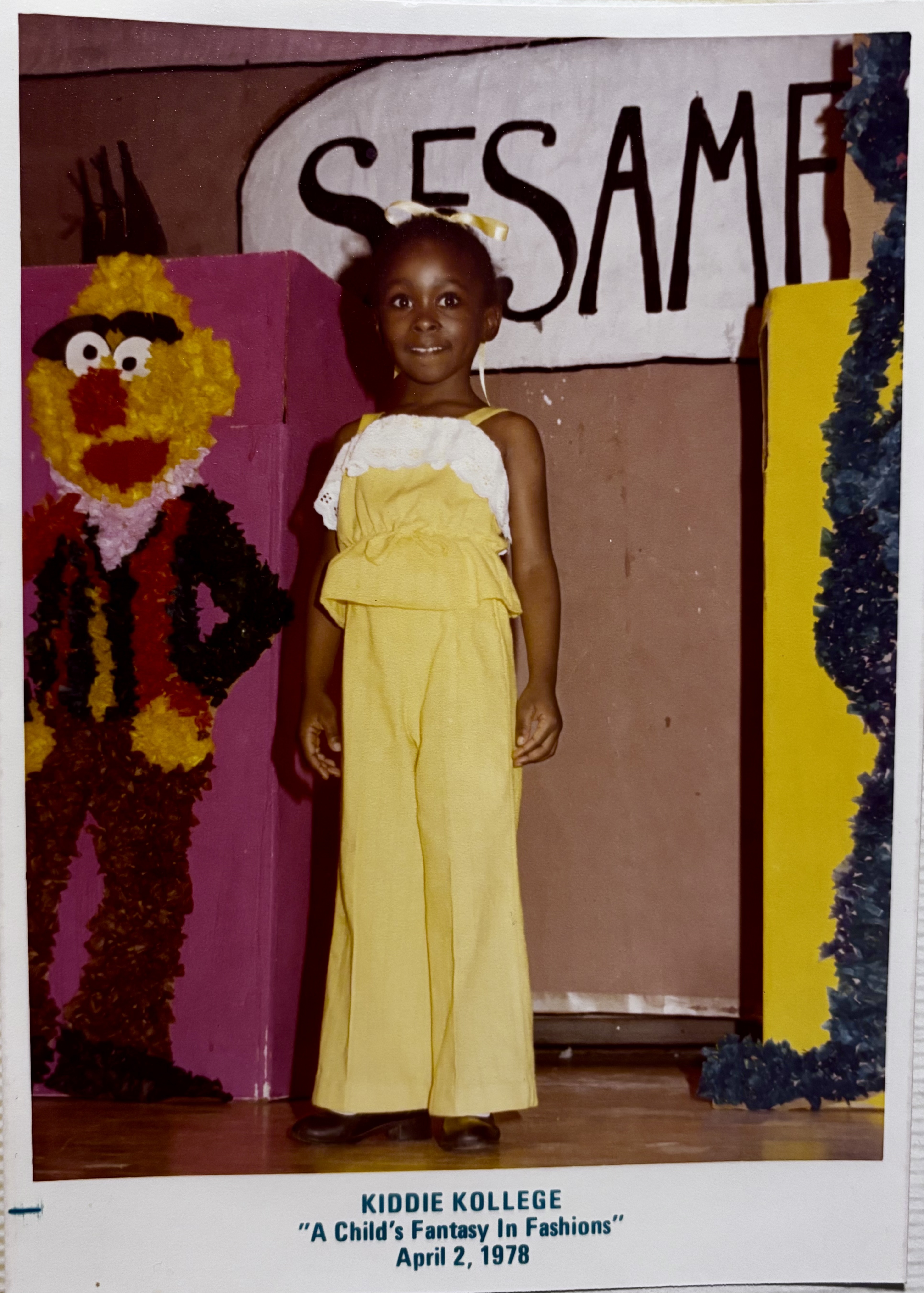 Another highlight was the school’s fashion show. Though I don’t remember every detail, photos help me recall my “modeling moment” on stage before a crowded room. I especially remember the yellow outfit my mother handpicked for me (as seen in the photo), and the gentle reminders from my teachers to smile.